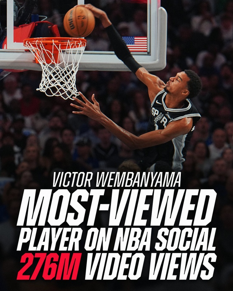 First in the league! Wenban’s videos have been viewed a total of 276 million times on NBA social media!