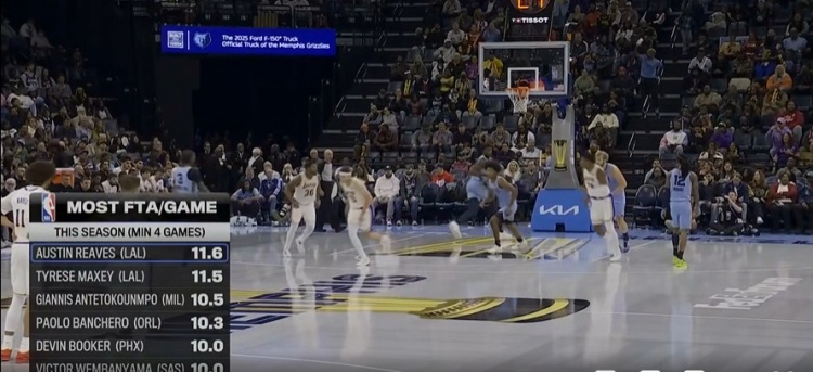 The broadcaster posted the average free throws per game among players who played at least 4 games this season: