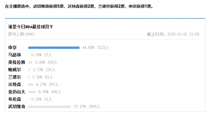 Vucevic’s vote rate: 15%+26.089=41.089%! Defeated Shen Jing (3%+31.395%=34.395%). Elected as the best player in the NBA today.