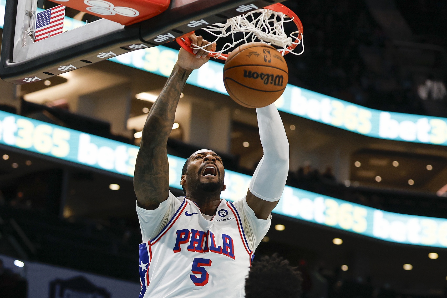 76ers insider Drummond performed well as a substitute in the first half. Not only did he grab offensive rebounds fiercely, he also finished very efficiently at the basket.