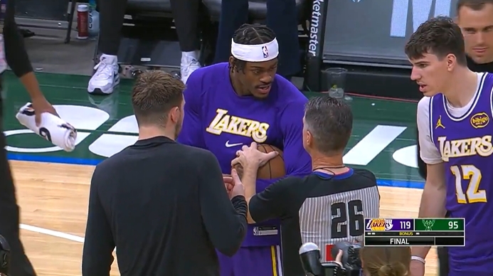 The Lakers defeated the Bucks 119-95 in an away game. A dramatic scene occurred after the game.