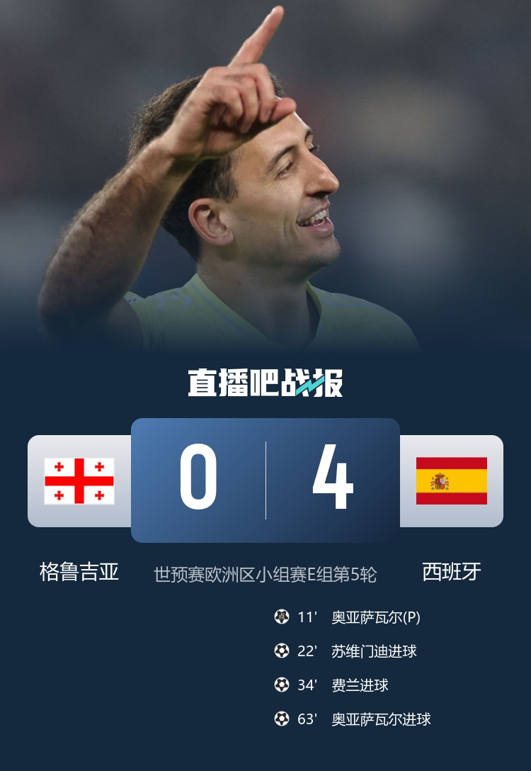 Football[Battle Report News] Spain 4-0 Georgia continues to lead. Ferran made points + passed and shot Oyarzabal with 2 shots and 1 pass. Oyarzabal made two shots, Suvimendi and Ferland contributed, Spain 4-0 Georgia. Switzerland 4-1, Sweden is in sight of...