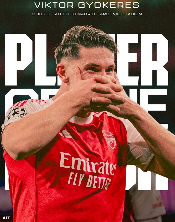 Scored twice, Arsenal official: Jokeres was elected the best player in the 4-0 Atletico Madrid team