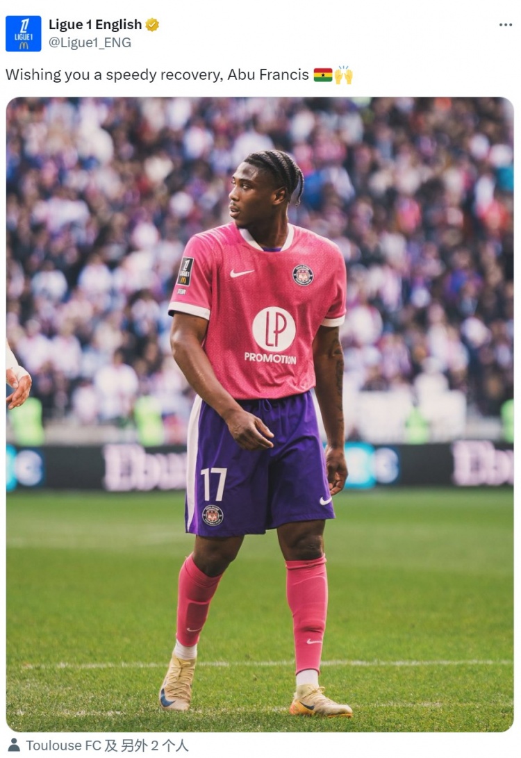 Ligue 1 officially updated its social media updates and wished Ghanaian midfielder Abou Francis, who plays for Toulouse, a speedy recovery.